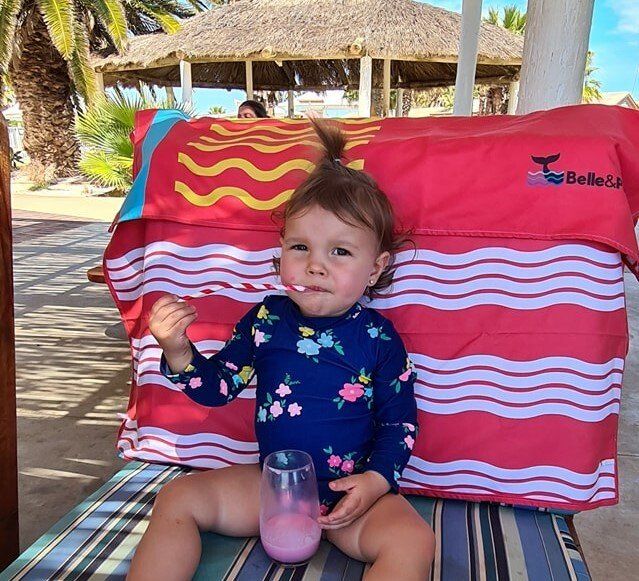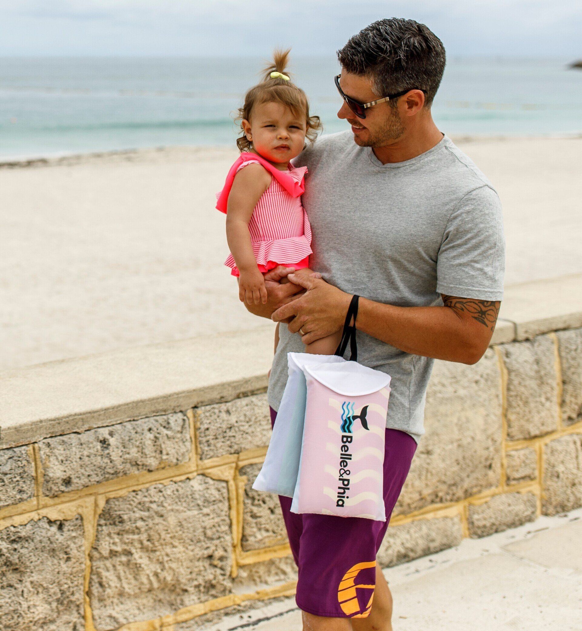 We love hiking the beaches with the kids to find shells and all sorts of cool things, so being able to hook our towels onto your carrier, backpack or just around your wrist sure is handy.